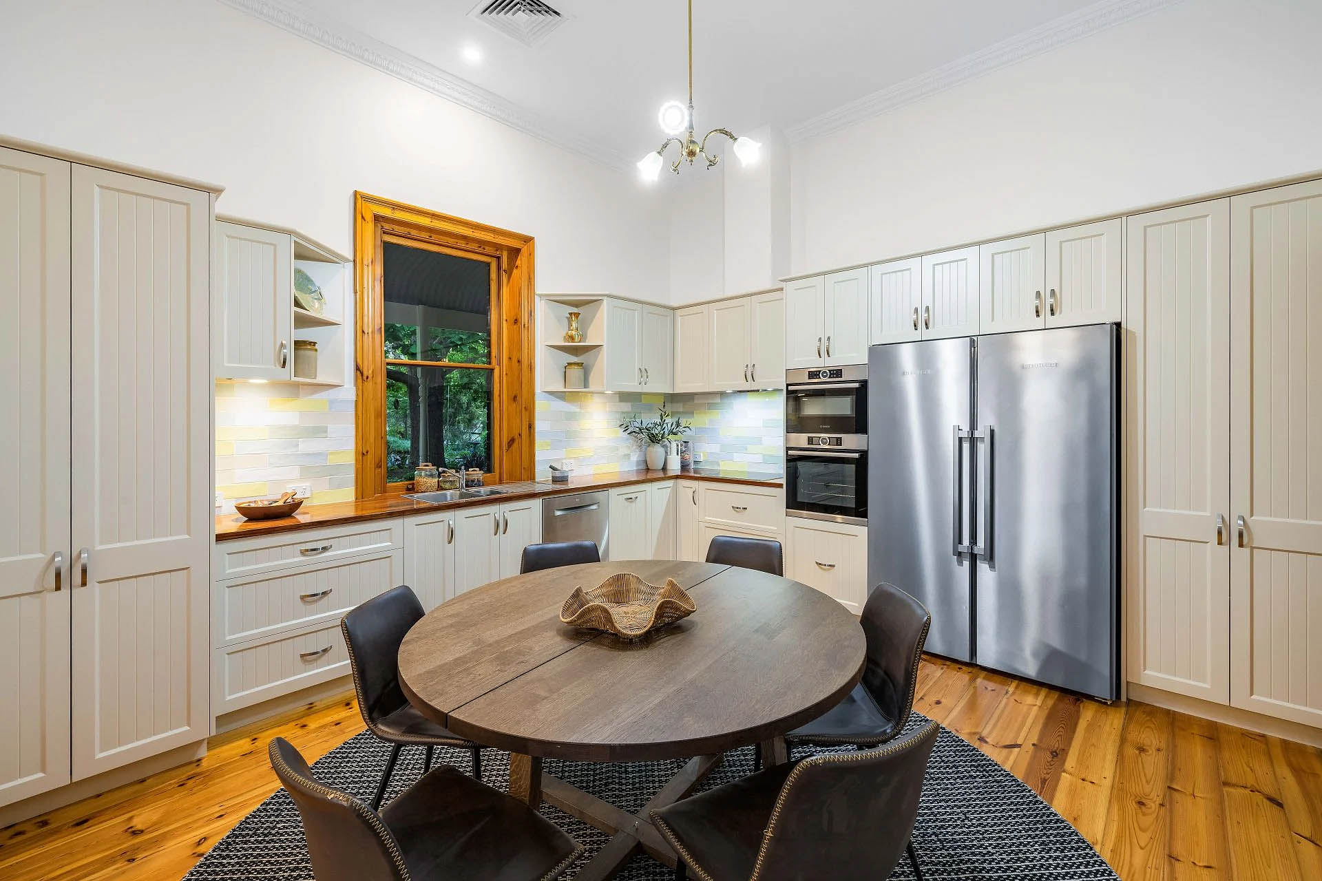 - ‘Inavogue’ 2-pac shaker-style kitchen hosts Blackwood benchtops, Bosch induction cooktop & dual oven – 1 steam assisted – a Liebherr fridge/freezer & Schweigen rangehood