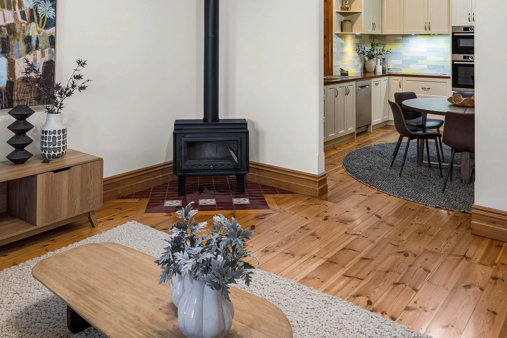 - Casual living room features a slow combustion fire