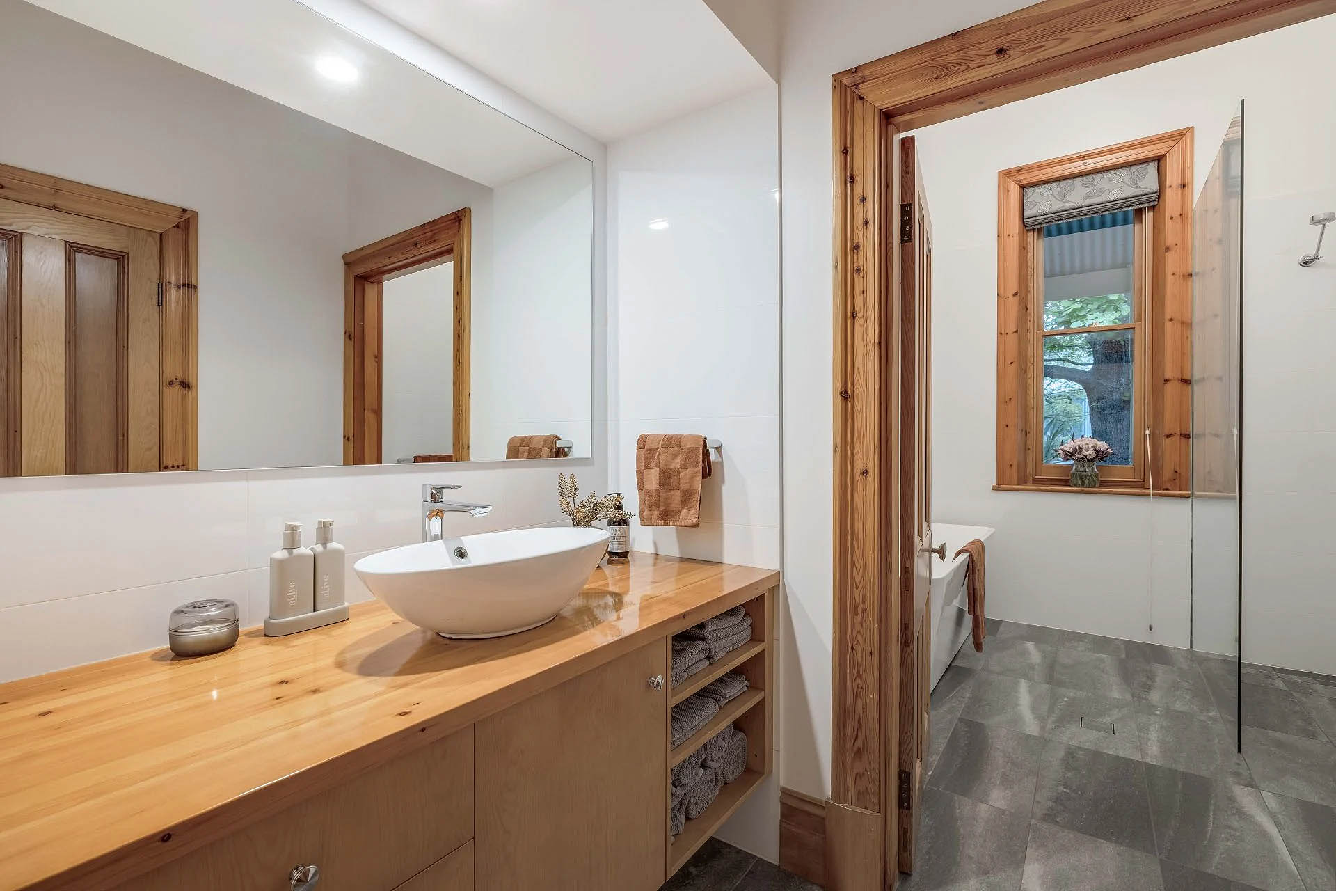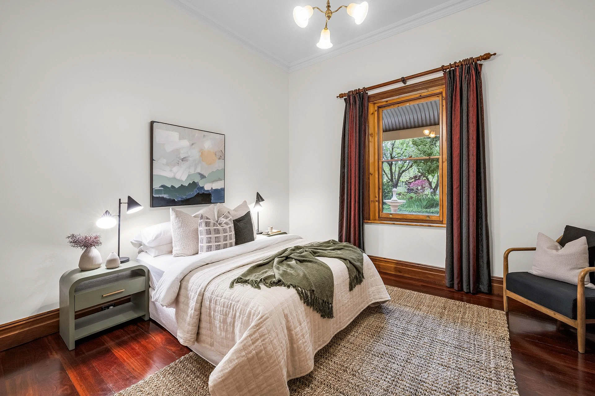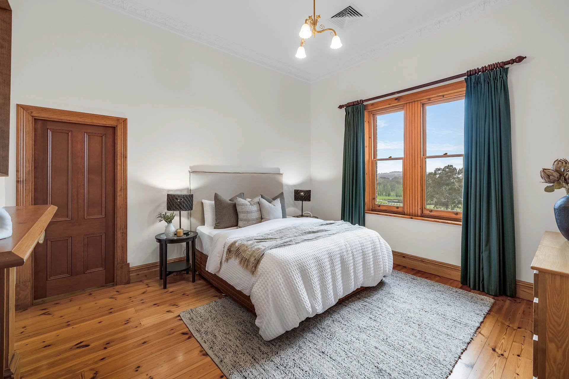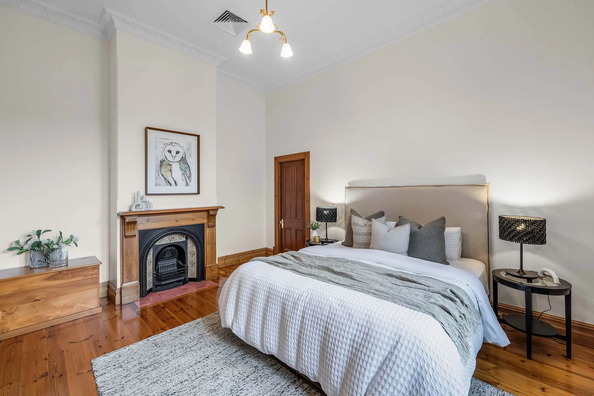 The Inavogue kitchen includes every caterer’s high-end appliance against Blackwood benchtops. Three oversized bedrooms preserve the home’s heritage warmth; the primary suite enjoys uninterrupted “vine time,” alongside a walk-in robe and ensuite.