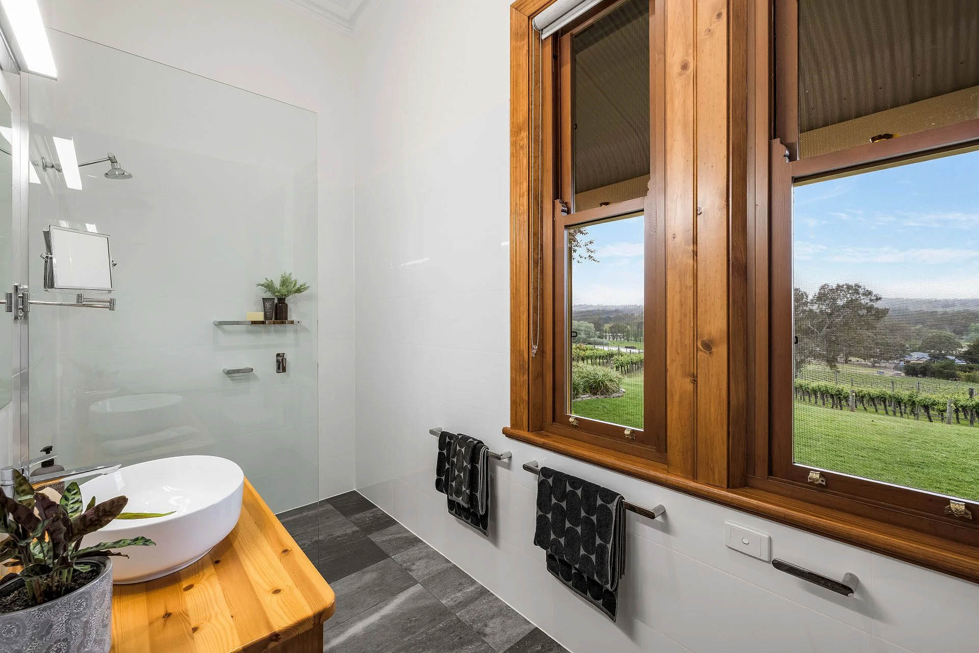 - Sweeping vineyard views from the primary bedroom