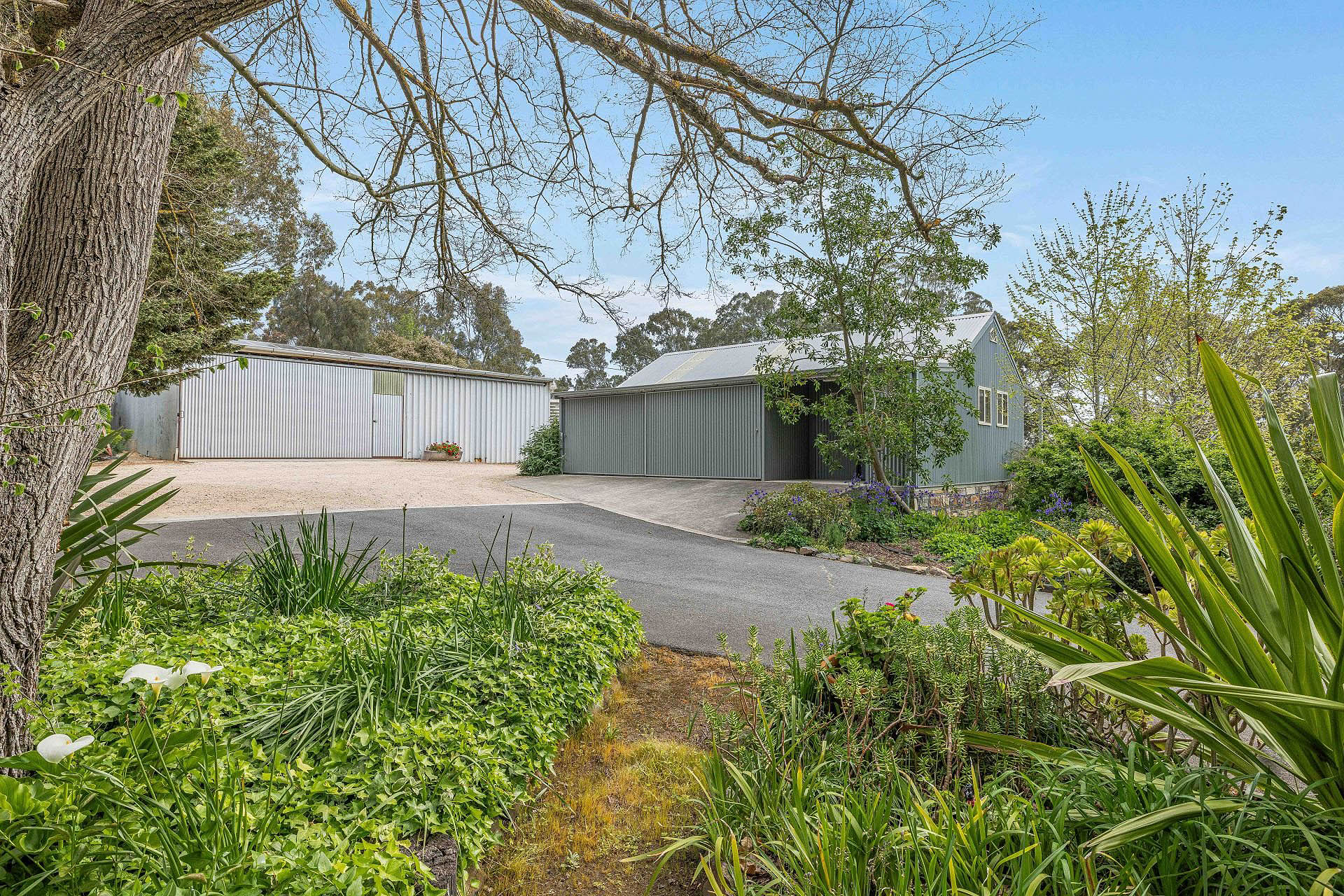 Practical extras include vehicle and utility shedding, a barn-style, air conditioned and lined office/studio, netted vegetable gardens, a dam, two bores, and substantial rainwater.