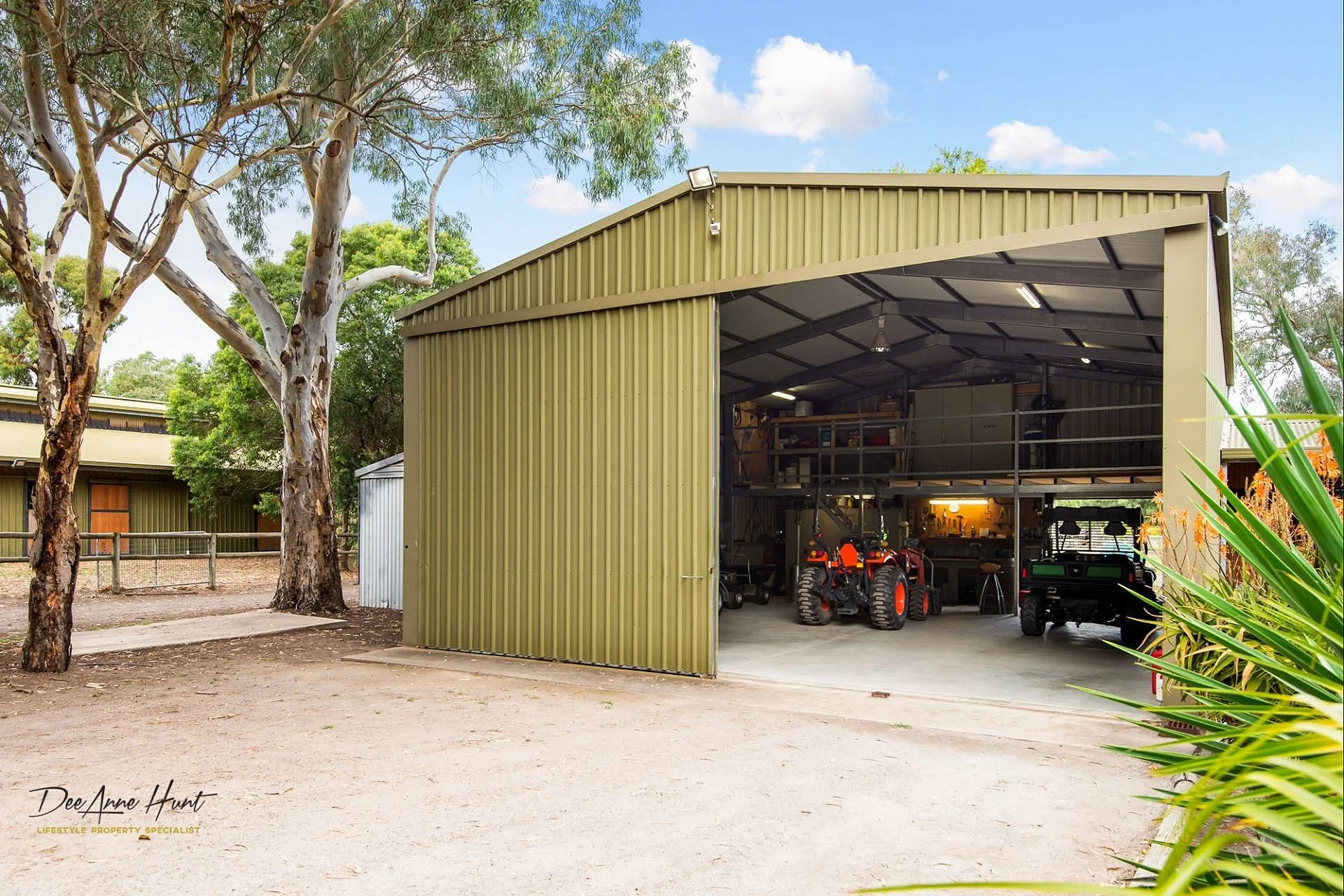 - 12m x 9m x 4.2m Steel frame main workshop/machinery shed with 9m x 3m Mezzanine, power, lights, concrete floor